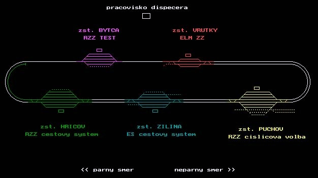 päť počítačov v každej stanici okruhu modelovej železnice, ktoré plnia funkciu reléového výstroja staničných a traťových zabezpečovacích zariadení
